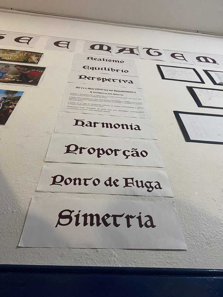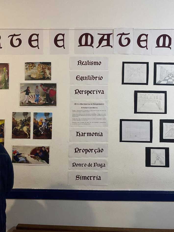 Esta exposição resultou de um trabalho interdisciplinar realizado em parceria entre História da Cultura e das Artes e Matemática, demonstrando como diferentes áreas do saber podem dialogar de forma criativa e significativa.