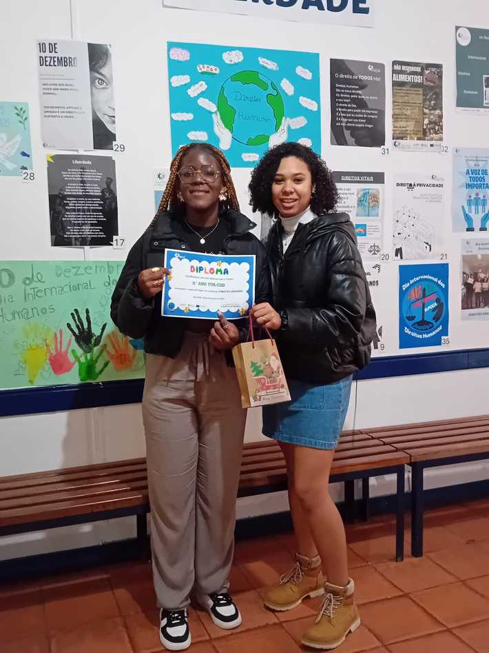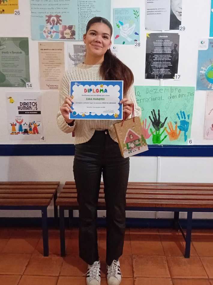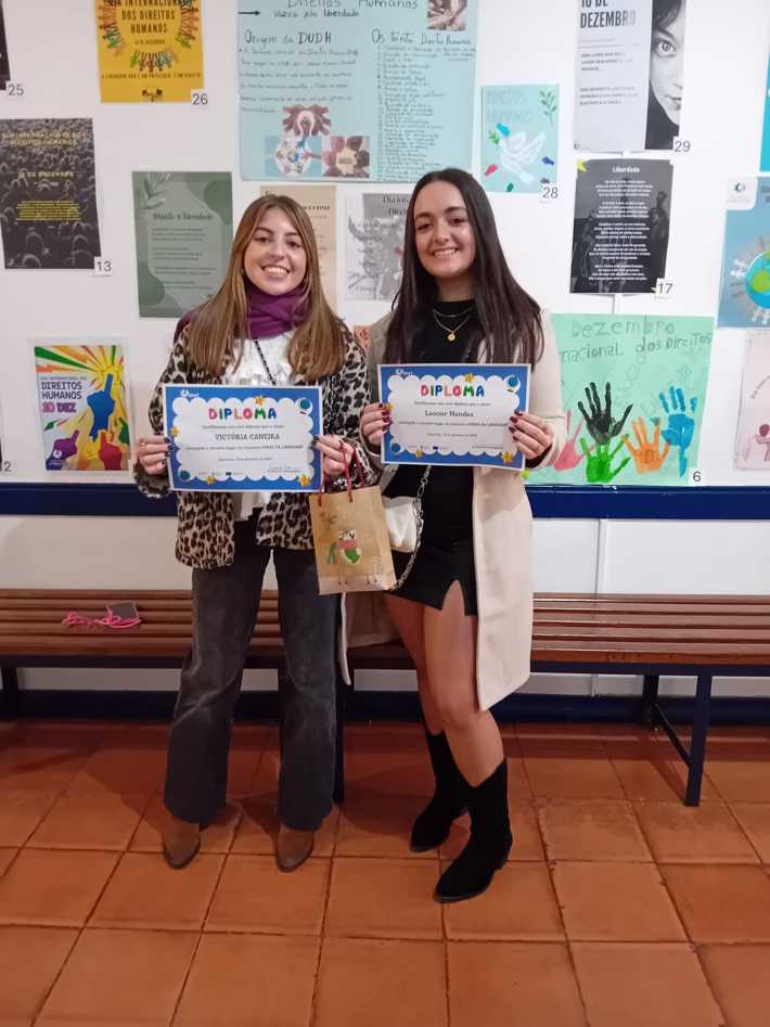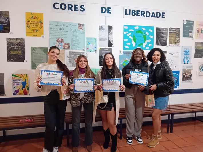 Os alunos do 11.º ano dos cursos profissionais Técnico/a de Turismo e Técnico/a de Comunicação e Serviço Digital promoveram um concurso para a comunidade escolar, culminando na exposição "Cores de Liberdade". Esta mostra apresentou cartazes desenvolvidos pelos alunos, em que exploraram temas relacionados com os Direitos Humanos, proporcionando um espaço para reflexão crítica e criativa sobre a importância destes valores universais.
