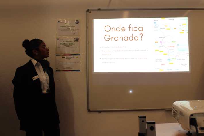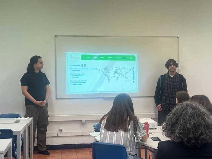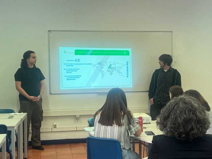 Os estudantes Joana Alves (Curso Técnico/a de Comunicação e Serviço Digital), Martim Gonçalves e Mel Lima (Curso Técnico/a de Turismo), e Leonardo Nascimento e Miguel Ferreira (Curso Técnico/a de Multimédia) relataram as suas experiências, destacando as aprendizagens culturais e pessoais vividas durante a mobilidade. Durante as suas intervenções, despertaram o interesse dos colegas e esclareceram as dúvidas colocadas pelos alunos que aspiram participar nas mobilidades deste ano letivo.