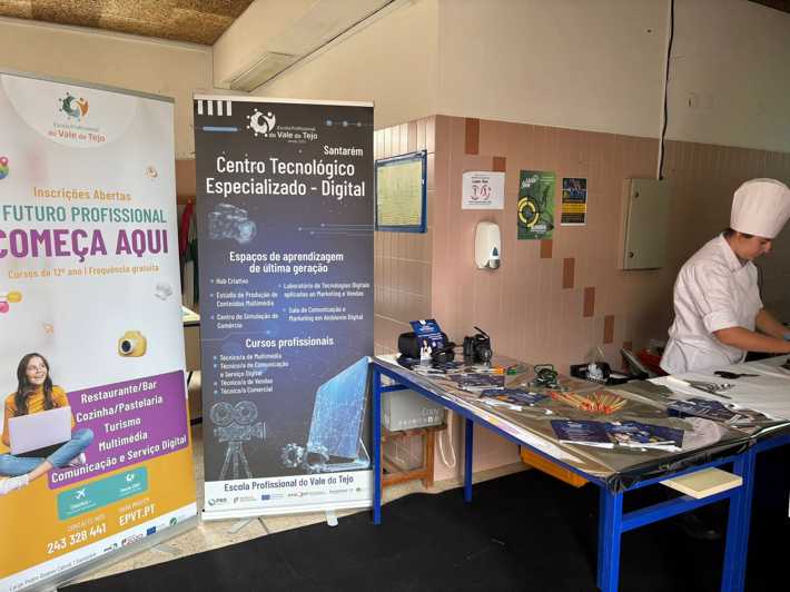 A Escola Profissional do Vale do Tejo (EPVT) marcou presença na Escol(h)as - Feira de Orientação Escolar e Profissional, realizada no Agrupamento de Escolas da Abrigada, no dia 16 de maio, com o intuito de divulgar a sua oferta formativa para o ano letivo de 2024/2025. O evento teve lugar na escola sede deste agrupamento, a Escola Básica de Abrigada, e contou com a participação de aproximadamente 70 alunos.