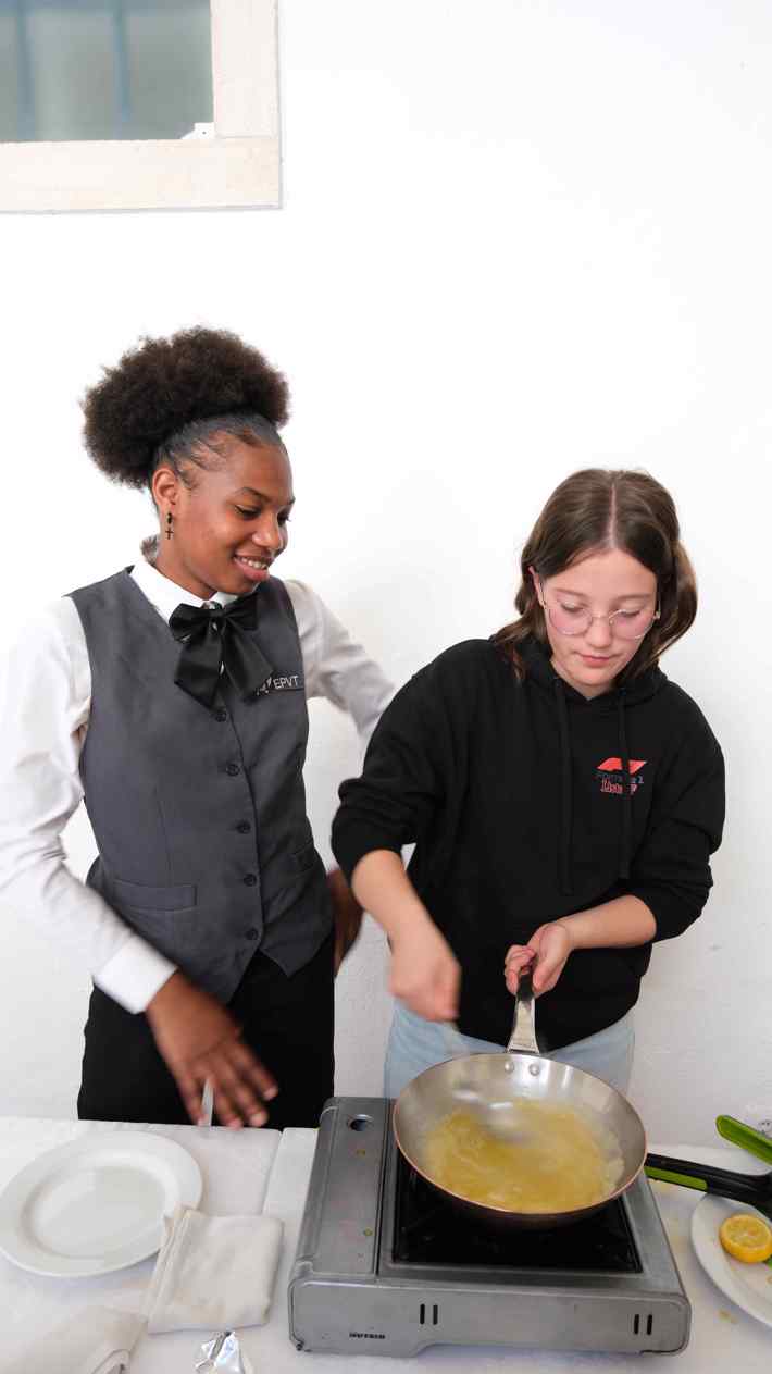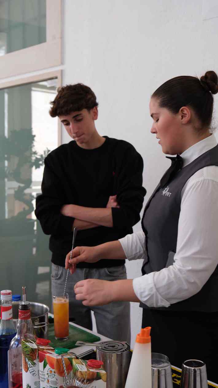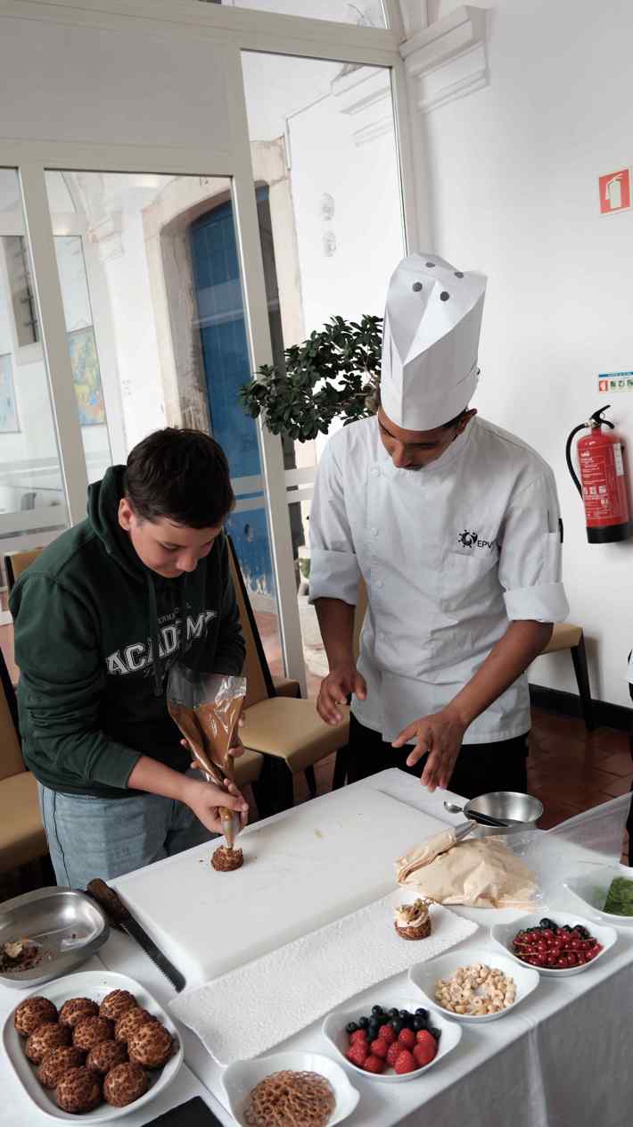 Seguiu-se uma visita guiada às instalações da escola, conduzida pelos alunos de Turismo, permitindo aos visitantes conhecer os diferentes espaços pedagógicos e as dinâmicas do dia-a-dia na EPVT. Posteriormente, os jovens participaram em workshops práticos nas áreas do seu interesse, onde foram recebidos pelos formadores da área técnica de cada curso, acompanhados por alunos que frequentam as respetivas formações na EPVT. Esta dinâmica permitiu um contacto direto com a realidade de cada curso, promovendo a partilha de experiências e o esclarecimento de dúvidas de forma próxima e informal.