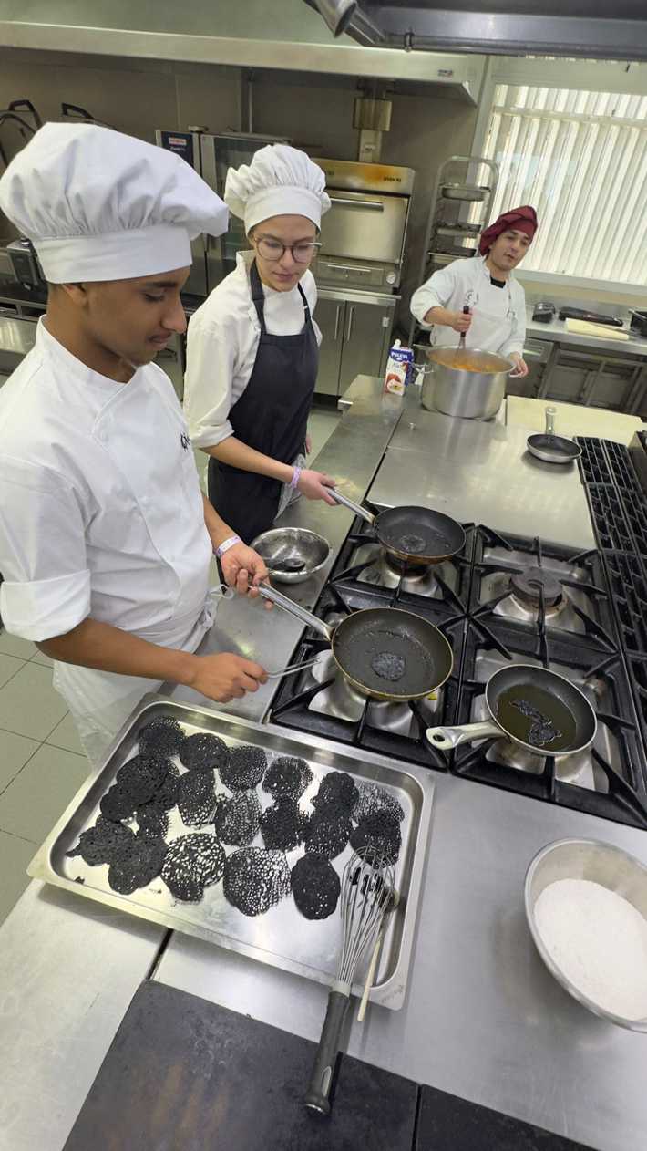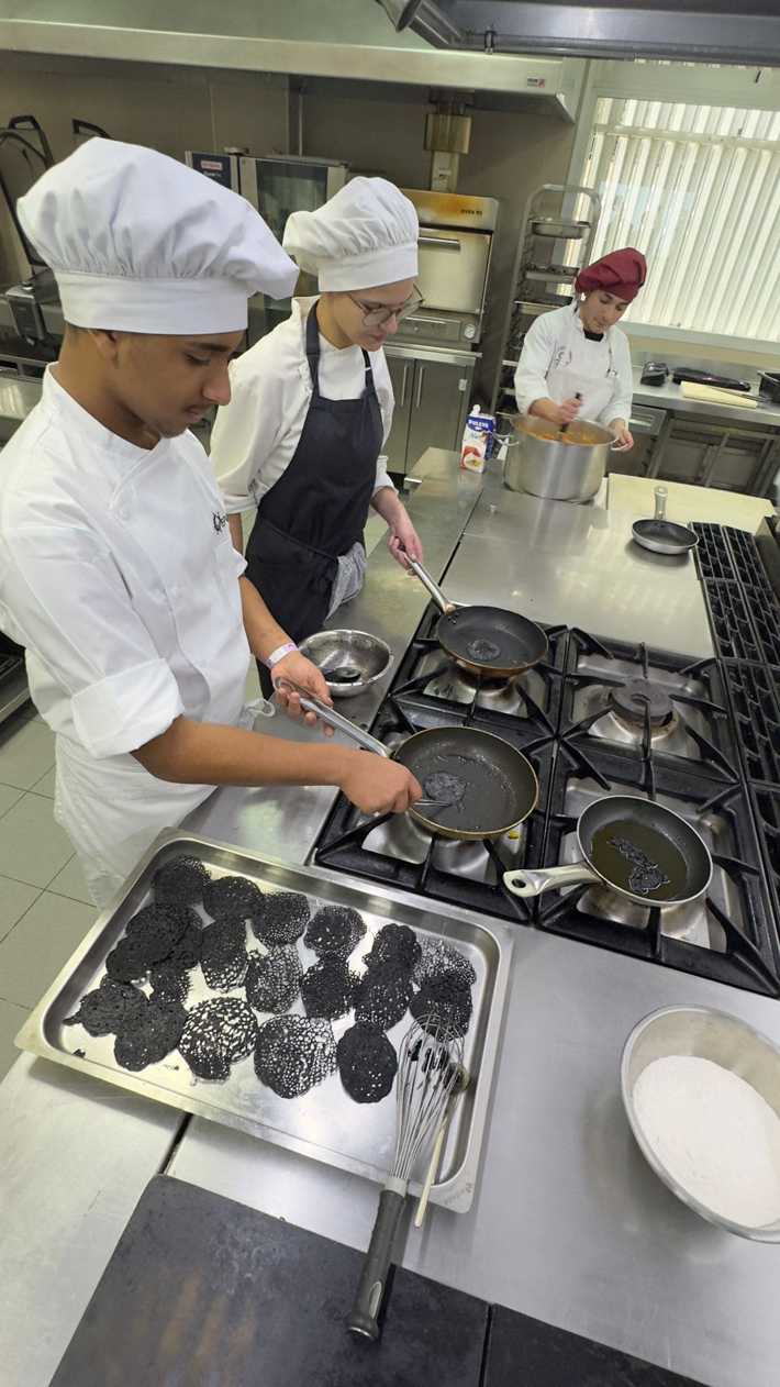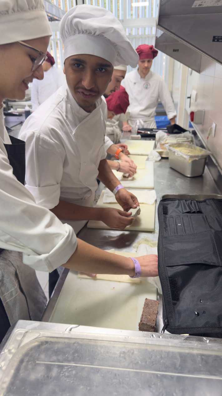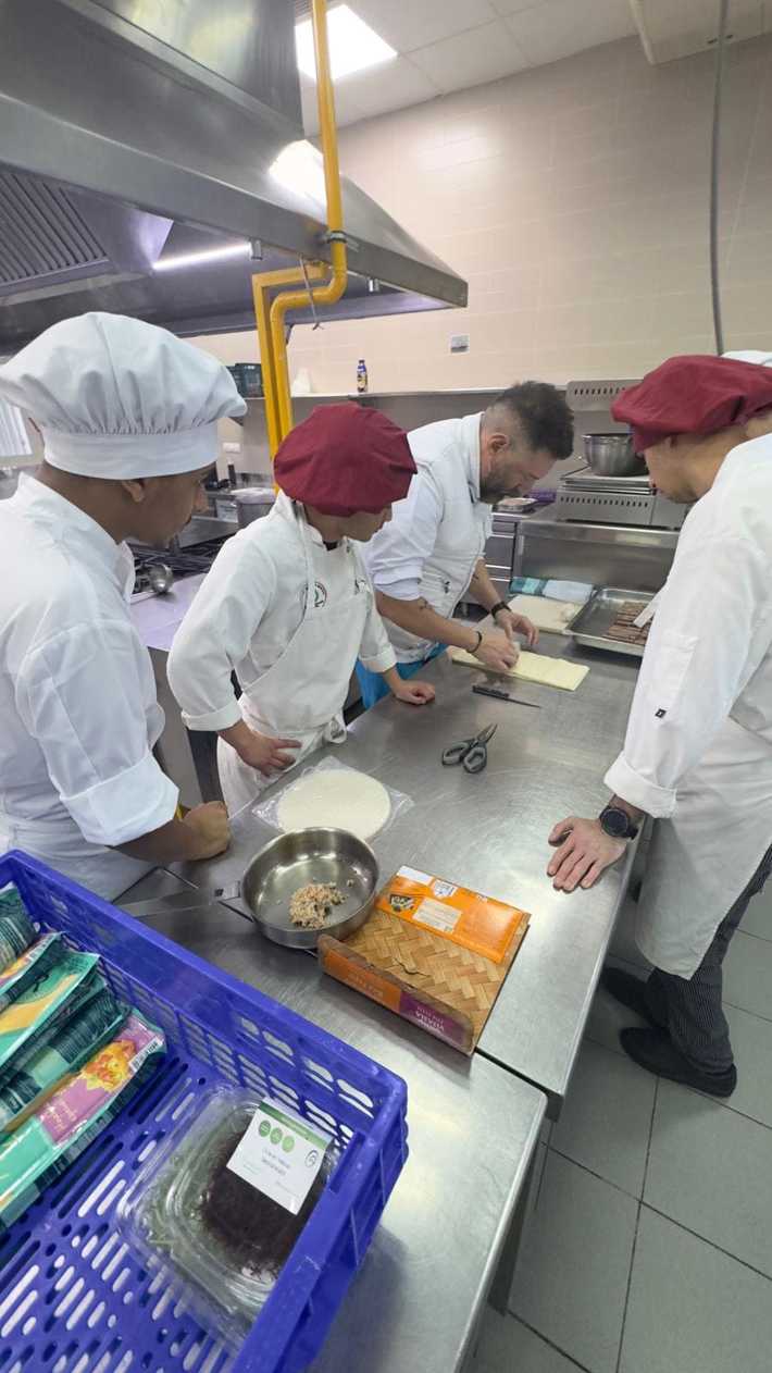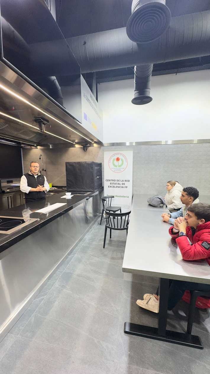 Em simultâneo com a mobilidade dos alunos, o chef Gonçalo Reguinga, formador de Cozinha/Pastelaria na EPVT, encontra-se também a realizar uma experiência de job shadowing, centrada na observação e acompanhamento da elaboração de pratos culinários típicos espanhóis, promovendo a partilha de conhecimentos, metodologias e boas práticas pedagógicas.