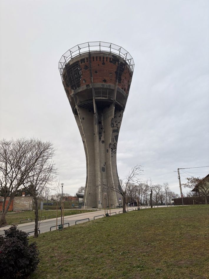 No dia 10 de fevereiro, no âmbito da componente de enriquecimento cultural prevista no Learning Agreement, realizou-se ainda uma visita à emblemática Vukovar Water Tower, seguida de um passeio pela cidade. A atividade permitiu contextualizar o território e reforçar a compreensão do enquadramento histórico e sociocultural local, contribuindo para uma melhor adaptação e integração dos alunos na comunidade de acolhimento.