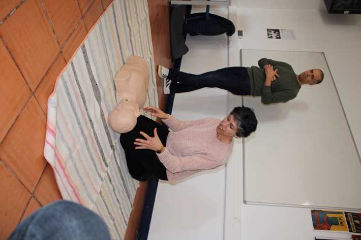 Durante a atividade, foram ainda abordadas situações comuns que podem ocorrer em contexto escolar e realizadas simulações práticas, permitindo aos participantes treinar procedimentos e preparar-se para agir de forma mais calma, confiante e assertiva perante uma eventual emergência.