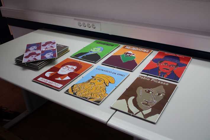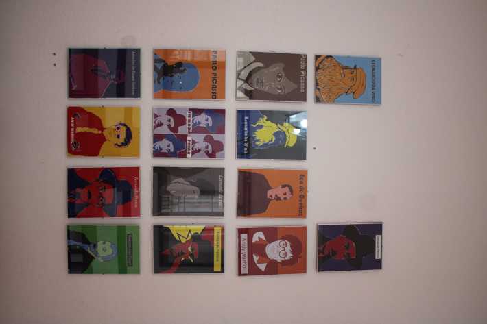 A exposição apresenta figuras emblemáticas da cultura e da arte mundial, reinterpretadas com cores fortes e traços marcantes. Entre os rostos retratados estão Andy Warhol, Fernando Pessoa, Vincent van Gogh, Leonardo da Vinci, Pablo Picasso, Eça de Queirós e Amadeo de Souza-Cardoso.