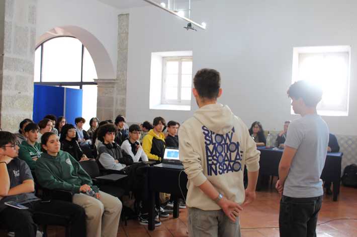 Para encerrar as jornadas, alunos finalistas do curso Técnico/a de Multimédia apresentaram o seu projeto de Prova de Aptidão Profissional (PAP) e, alunos de 11.º ano falaram sobre a sua Formação em Contexto de Trabalho (FCT). Este momento permitiu uma troca de experiências e conhecimentos entre os jovens, destacando-se a importância da formação prática para o desenvolvimento de competências.