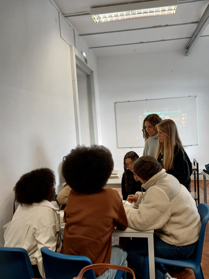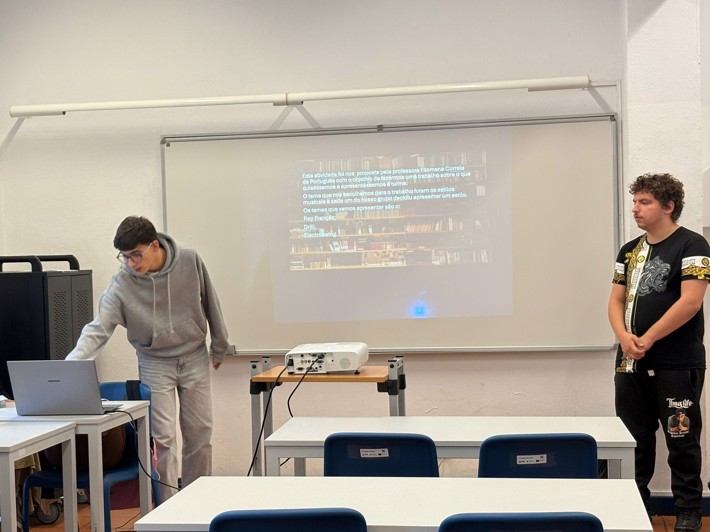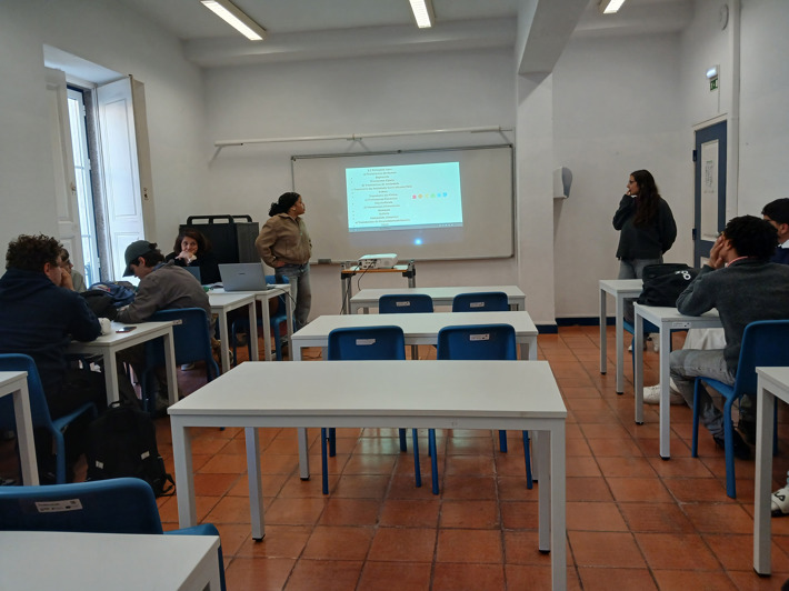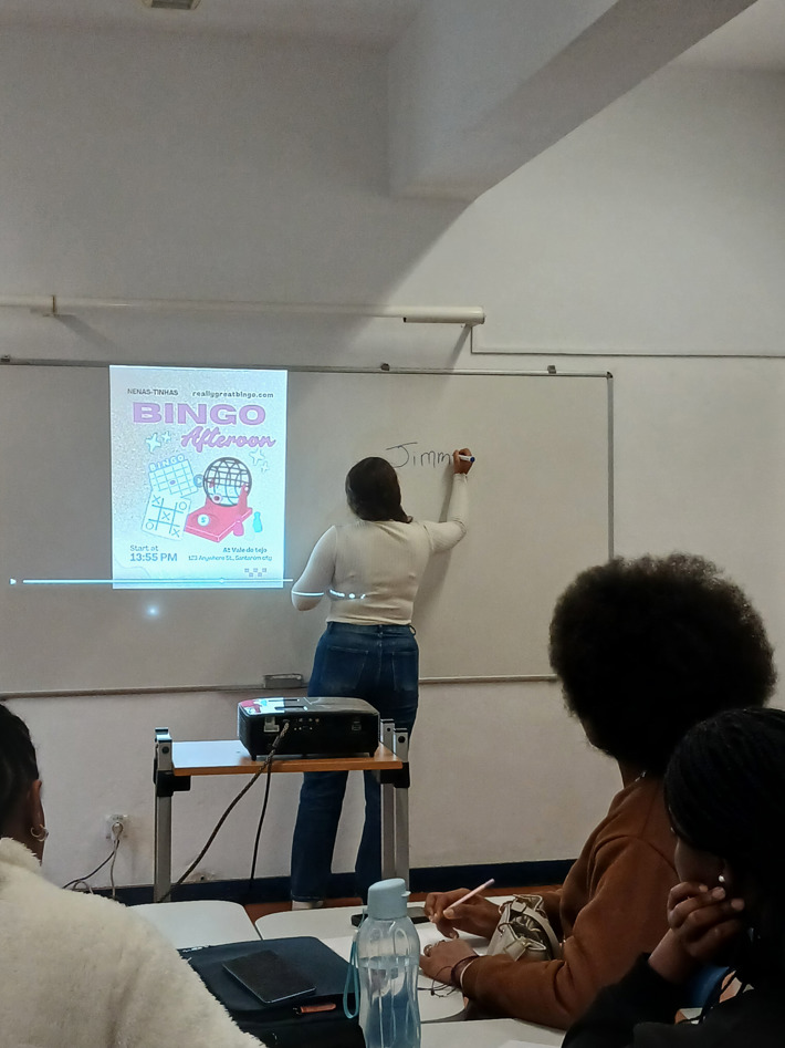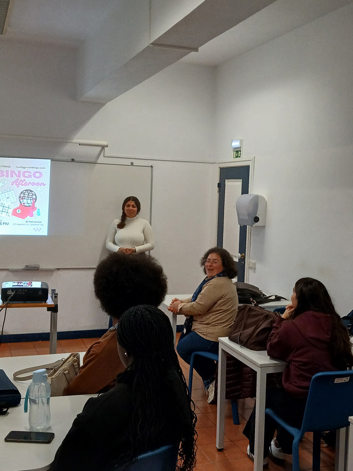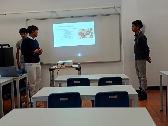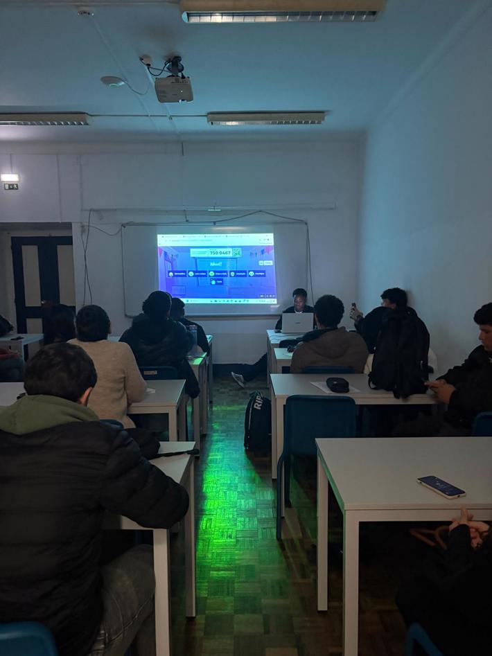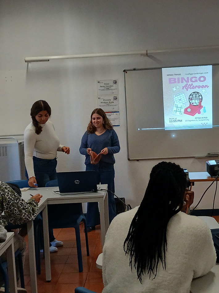 11.º ano de Turismo: apresentou duas propostas distintas — um grupo conduziu uma aula sobre Gestão de prioridades em visitas de estudo, com fichas de trabalho colaborativo; o outro orientou uma aula de Inglês através de um animado jogo de Bingo.