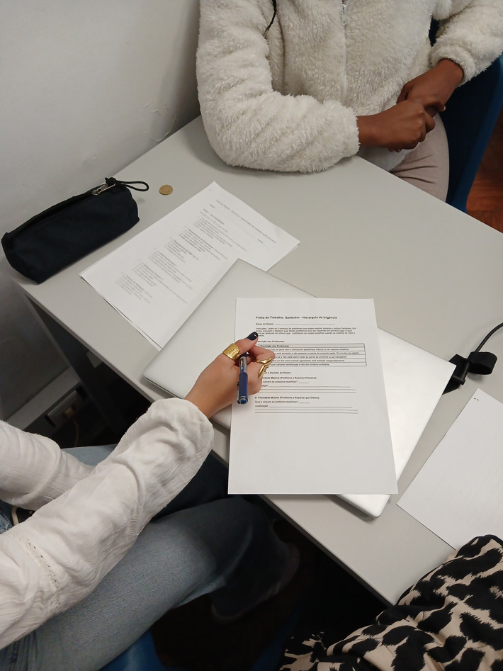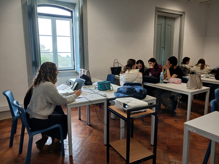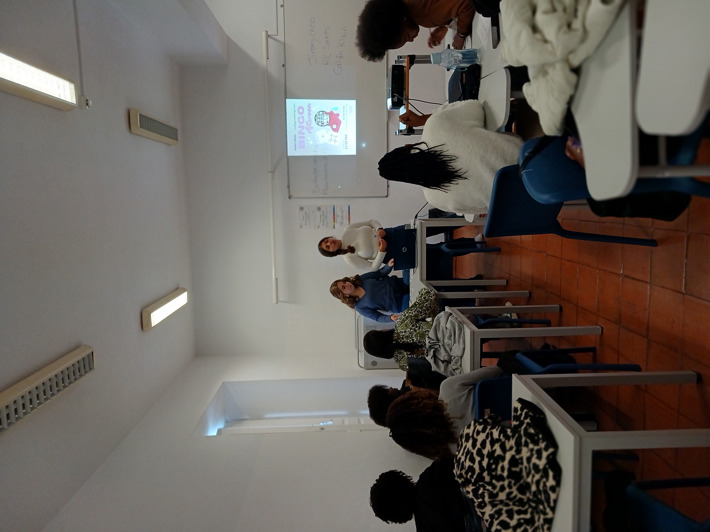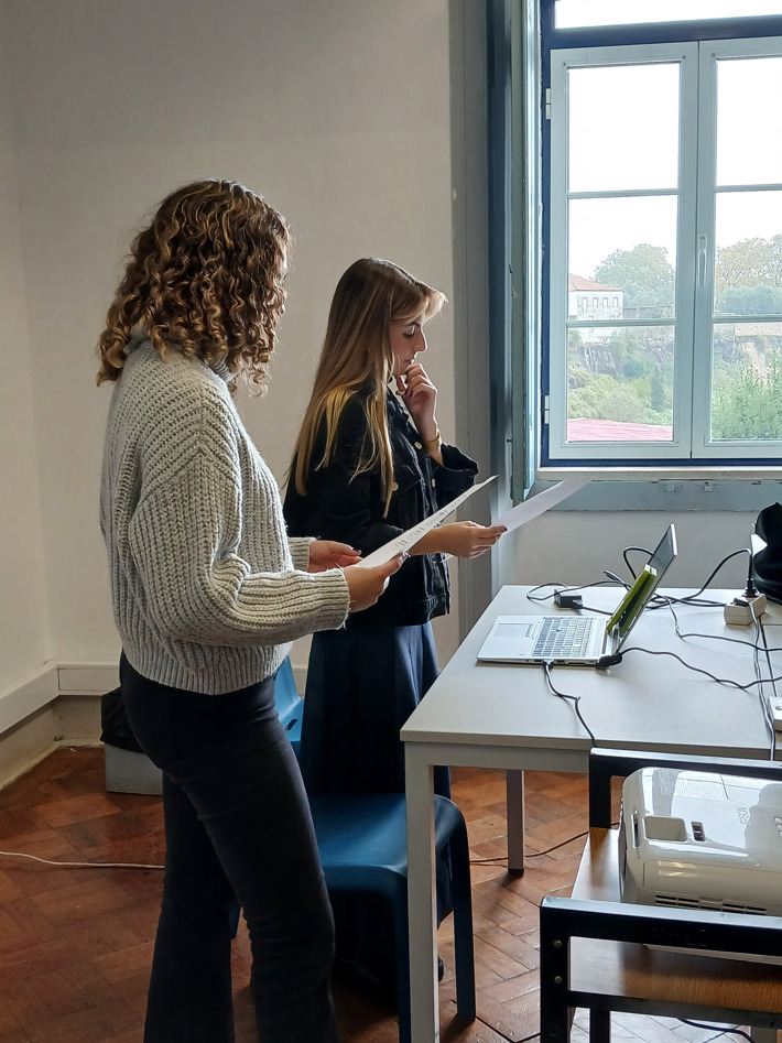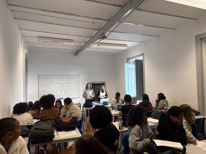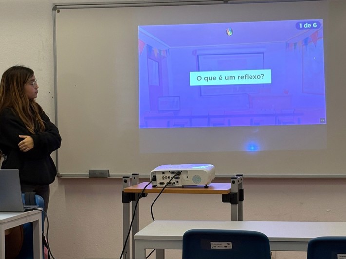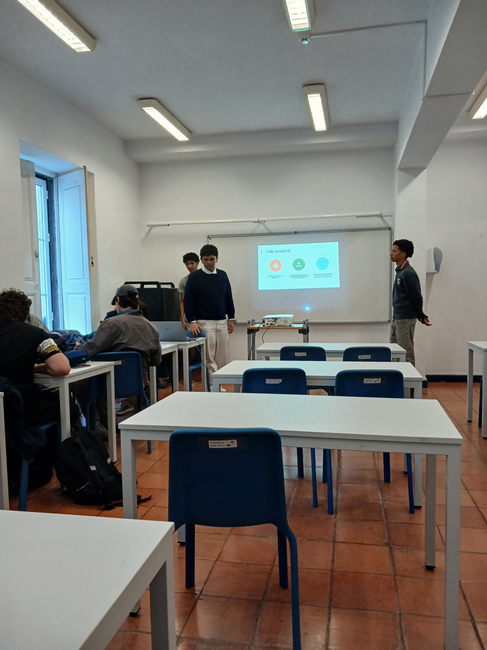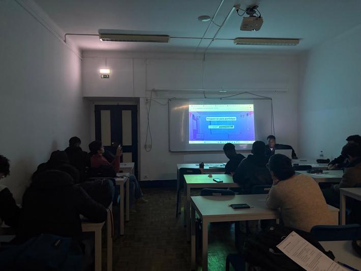 11.º ano de Turismo: apresentou duas propostas distintas — um grupo conduziu uma aula sobre Gestão de prioridades em visitas de estudo, com fichas de trabalho colaborativo; o outro orientou uma aula de Inglês através de um animado jogo de Bingo.