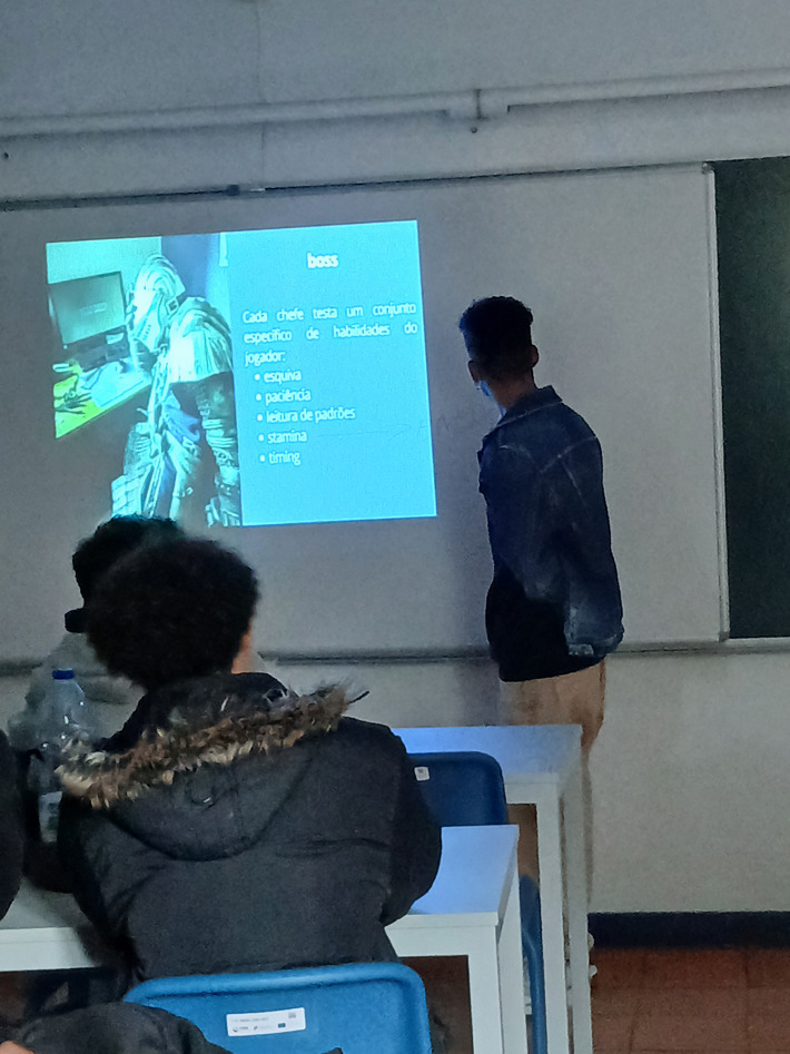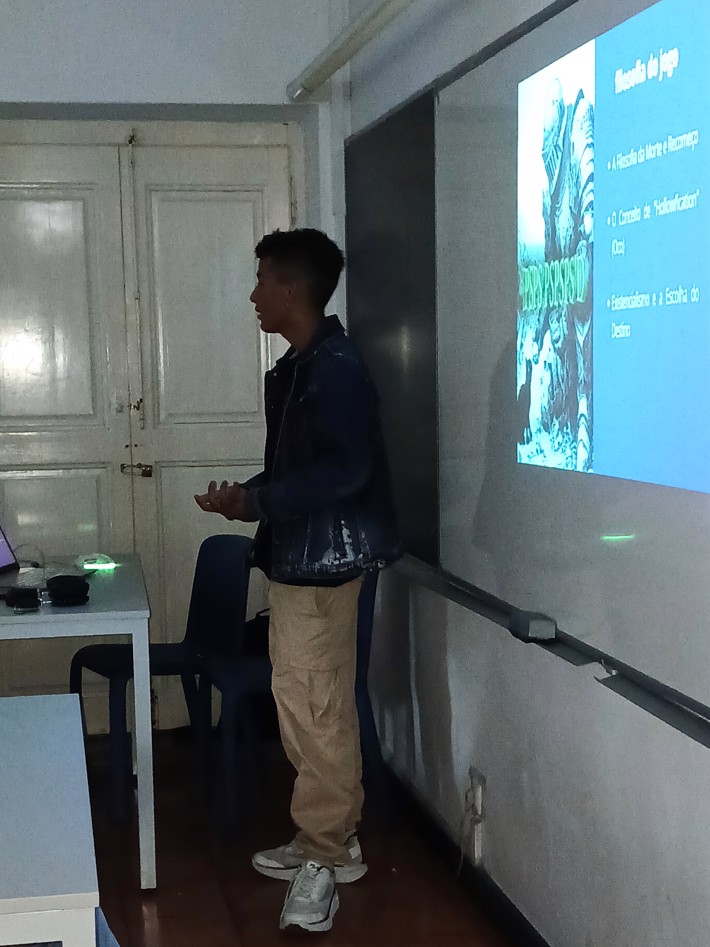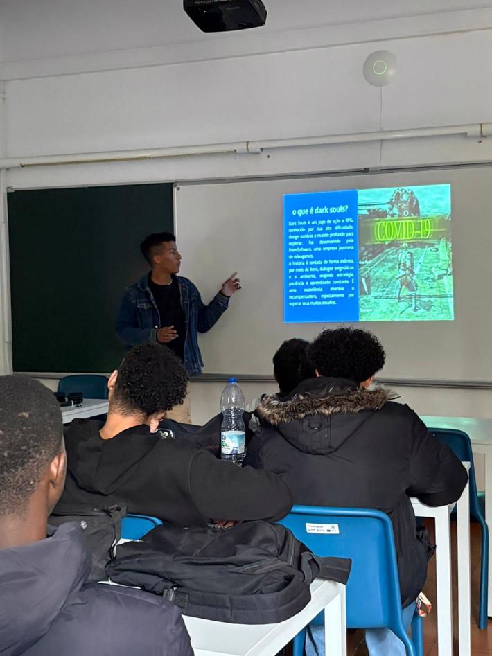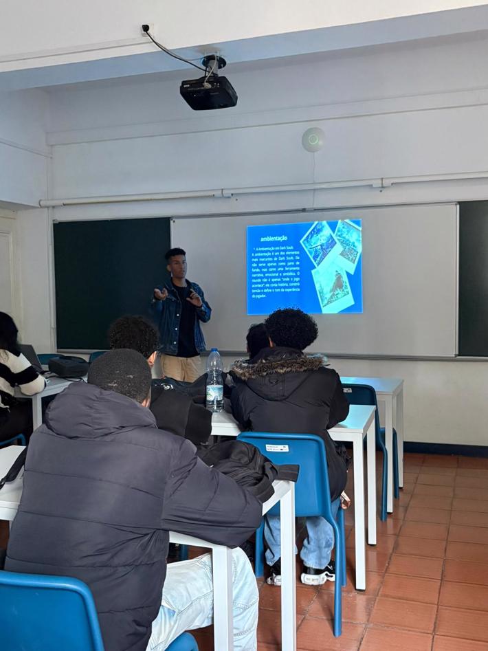 10.º ano de Multimédia: trouxe para a sala a "cultura nerd" com uma aula dedicada ao universo de Dark Souls, explorando narrativa, estética e impacto cultural do jogo.