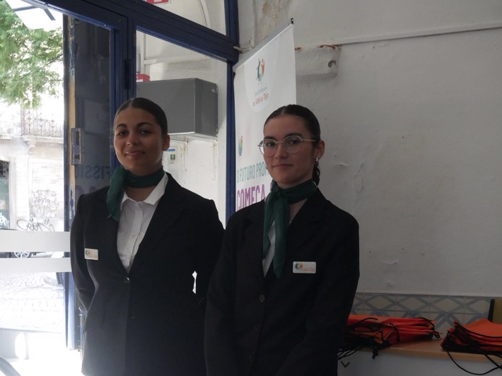 Alunas do curso profissional Técnico/a de Turismo acolheram todos os novos alunos e seus representantes à entrada, e mais tarde asseguraram a visita guiada às instalações da EPVT.