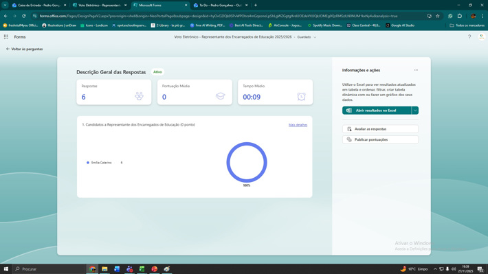 A eleição decorreu por voto secreto, através de boletim eletrónico disponibilizado na plataforma Microsoft Forms. Após a contagem dos votos, foi confirmada a eleição de Emília Catarino, que assumirá as funções de Representante dos Encarregados de Educação da EPVT no ano letivo 2025/2026. A votação registou seis votos a favor e uma abstenção.