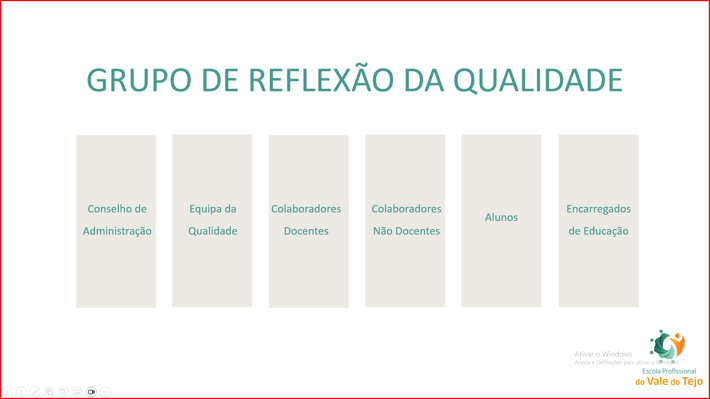 A sessão teve início com o acolhimento aos participantes pelo Gestor da Qualidade, Pedro Gonçalves, que apresentou o SGQ em funcionamento na EPVT e explicou o papel e responsabilidades do Representante dos Encarregados de Educação, nomeadamente a sua participação no Grupo de Reflexão da Qualidade.