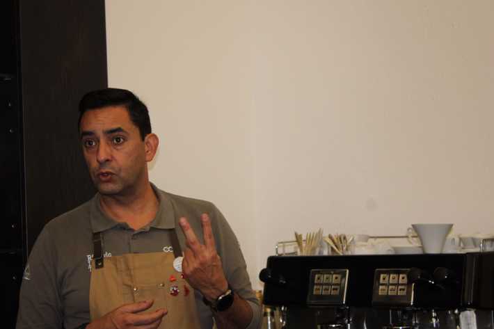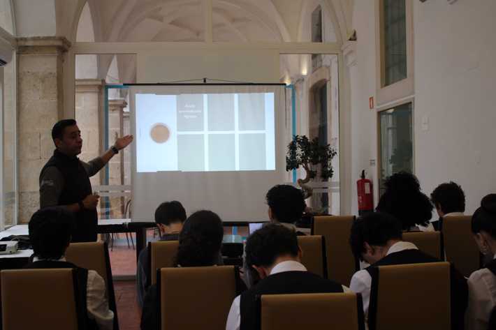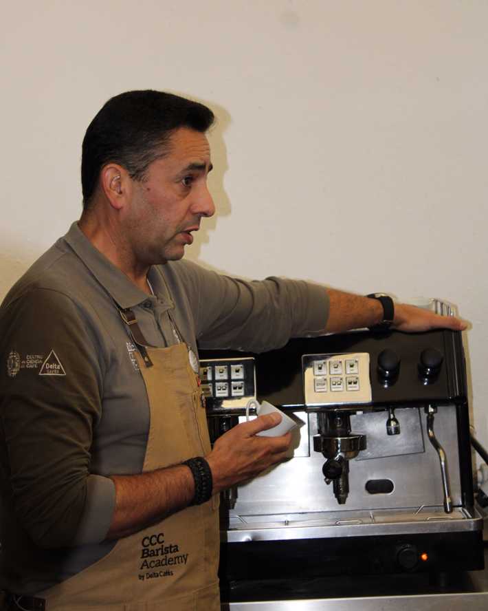 Em simultâneo, no restaurante pedagógico Claustrum, a turma do 10.º ano do curso Técnico/a de Restaurante/Bar participou num workshop conduzido pelo barista Ricardo Lima, da CCC Barista Academy by Delta Cafés. O formador deu a conhecer a história e o universo da Delta Cafés, explicou o processo de produção do café, desde a origem até à chávena, e apresentou diversas formas de preparação e combinação, destacando a variedade de bebidas e métodos associados ao trabalho de barista.