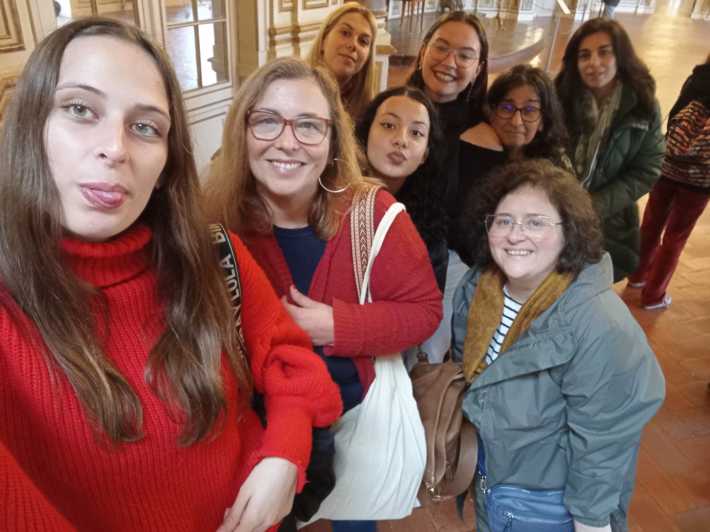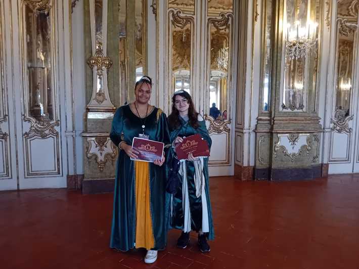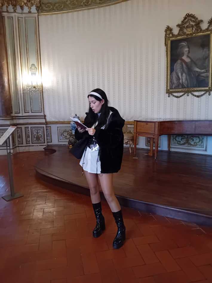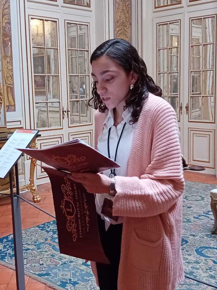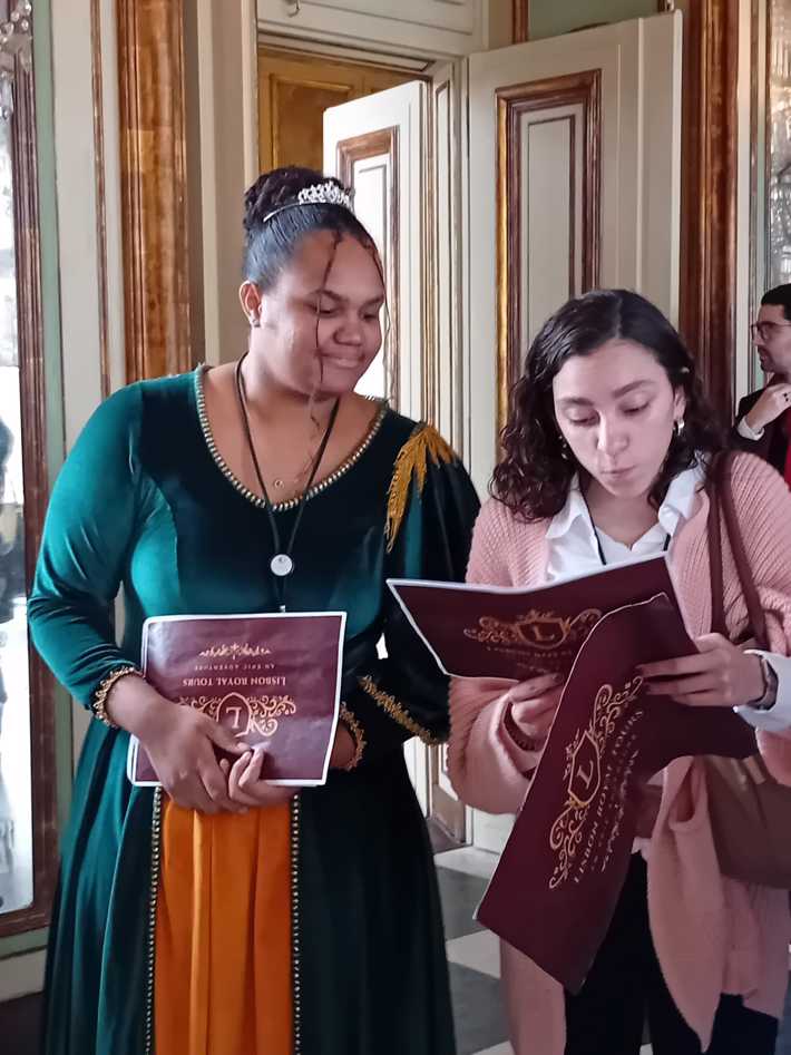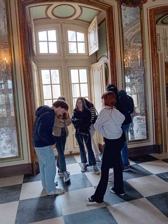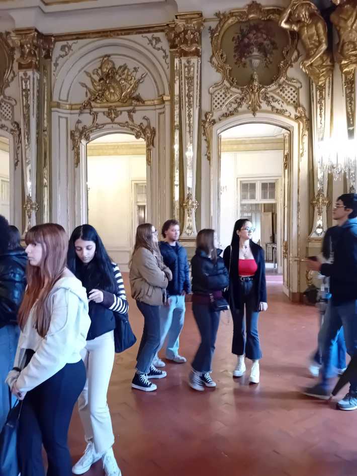 Durante a visita guiada ao Palácio de Queluz, os alunos envolvidos nos projetos de PAP promoveram uma visita encenada, que resultou numa experiência imersiva que os colocou no centro de toda a ação e história, como se estivessem numa peça de teatro.