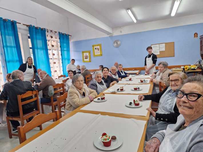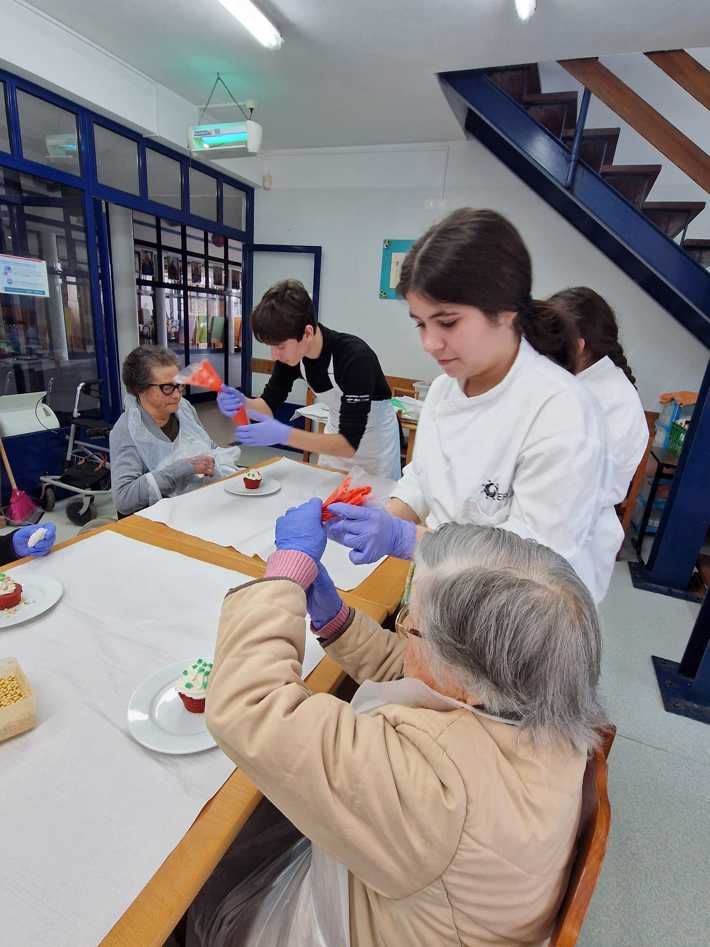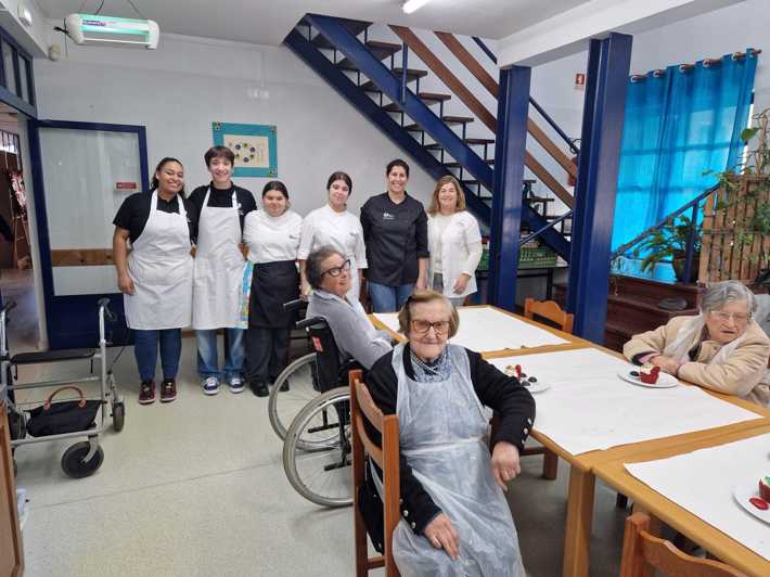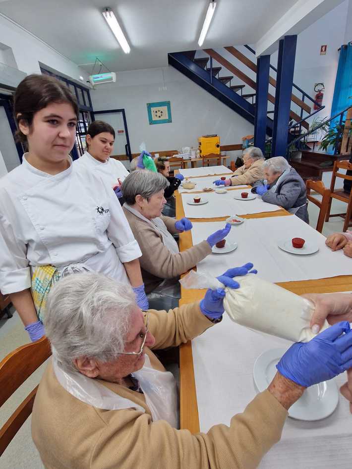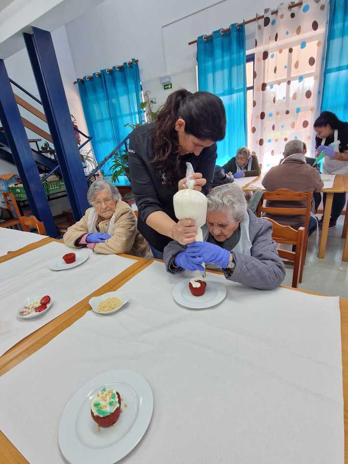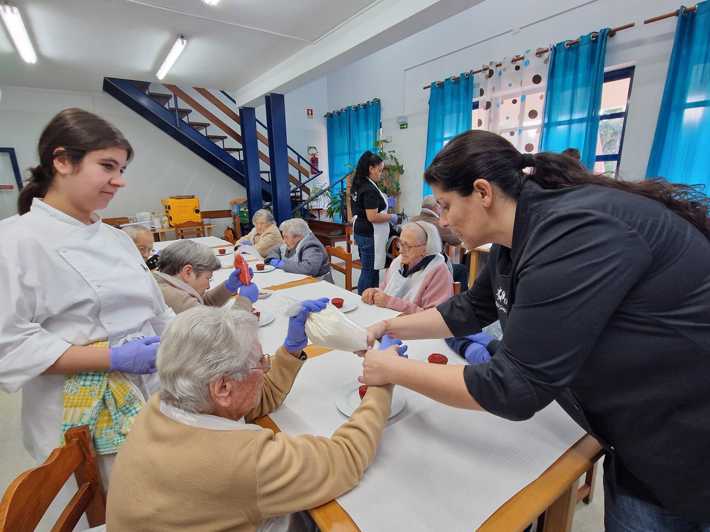 A iniciativa, realizada em resposta a um pedido do Centro, teve como objetivo promover a interação entre os alunos e os idosos do centro de dia, incentivando a mobilidade dos participantes e proporcionando momentos de partilha e aprendizagem. Os alunos realizaram um workshop de cupcakes e decorações natalícias, transformando a atividade num verdadeiro ambiente festivo e criativo.