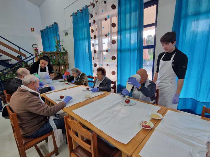 No dia 4 de dezembro de 2024, alunos de 10.º e 11.º anos do curso profissional Técnico/a de Cozinha/Pastelaria da Escola Profissional do Vale do Tejo (EPVT), acompanhados pela Chef Rita Santos, formadora de pastelaria, participaram numa atividade especial no Centro Social Paroquial de Santa Marta de Alcanhões.