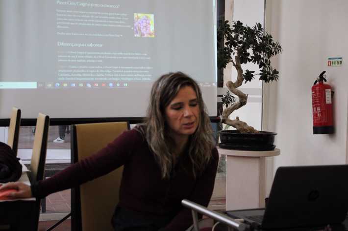 A aula iniciou-se com uma abordagem teórica onde os estudantes aprenderam a anatomia da uva e o impacto das diferentes castas no aroma e sabor dos vinhos, os tipos de vinhos e respetivos processos de produção, e fatores que influenciam a qualidade dos vinhos.