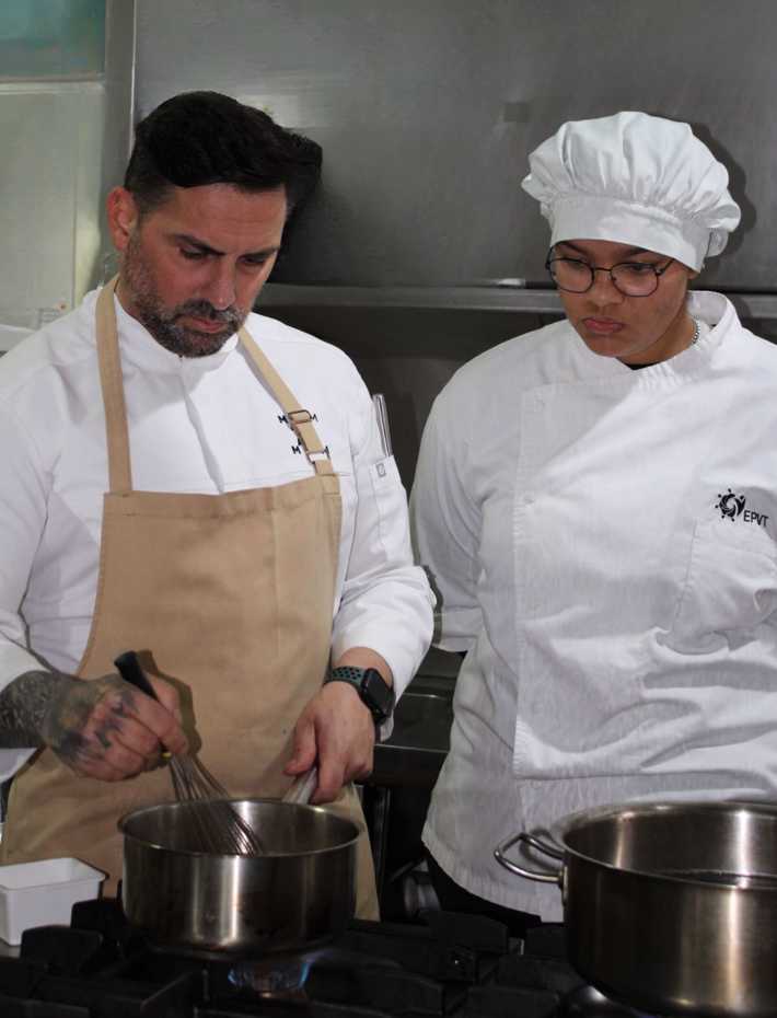 No dia 27 de novembro, os alunos do 12º ano dos cursos Técnico/a de Cozinha/Pastelaria e Restaurante/Bar da Escola Profissional do Vale do Tejo (EPVT) viveram um dia de aprendizagem prática e inspiração profissional.